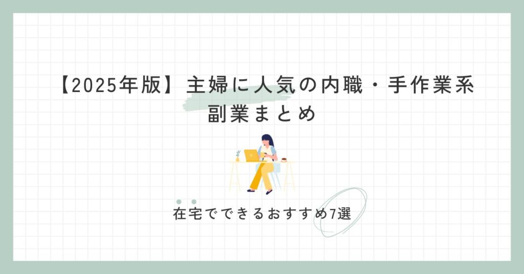 ここでは、手軽さ・収益性・継続性を基準に、主婦に人気の手作業系副業を7つ厳選してご紹介します。